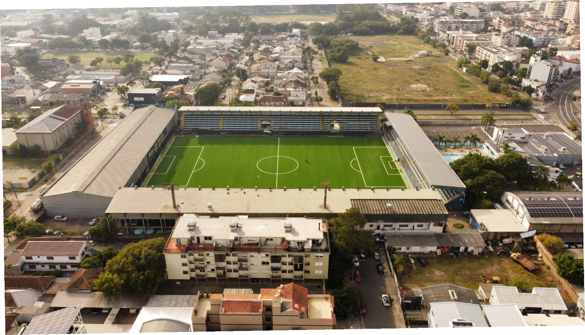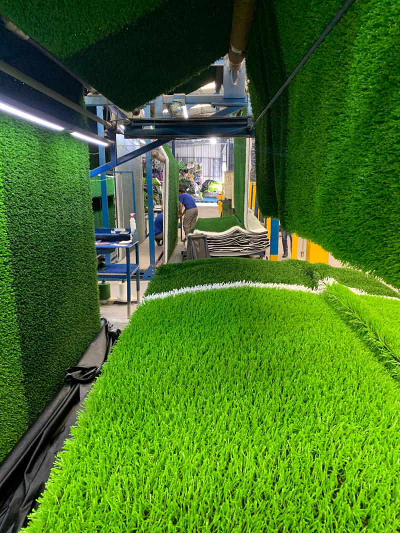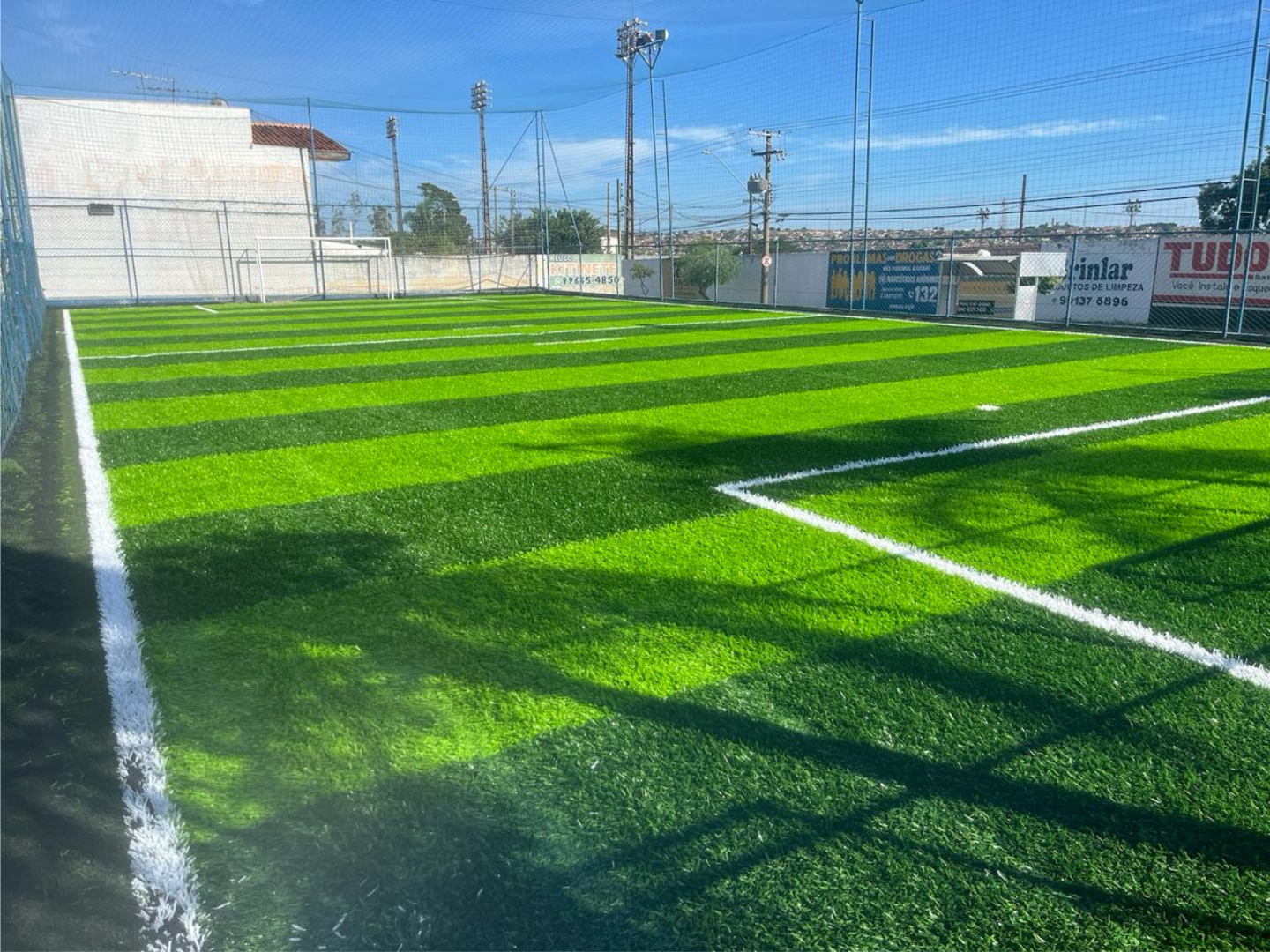 • Fixação do Gramado: Com tecnologia exclusiva de colagem, uniforme aplicação e soldagem, sem percepção das emendas do gramado.